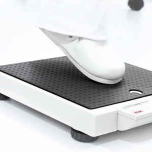 SECA 644 Hand Rail Scale – The integrated handrail provides the patient with sturdy support throughout the weighing process. Thanks to the generous platform, for patients who prefer to sit, a chair can be placed on the scale. The pre-TARE function with three memory cells automatically deducts a stored weight (such as a chair) to determine net weight. Moreover, the seca 644 is made mobile by two rubber wheels, and is powered by rechargeable batteries or power adapter. When the scale is connected to a printer, the time of weighing and the patientʼs weight are automatically recorded and printed by the time module.